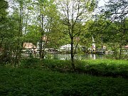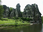 Blick vom Oberen Teich auf die Externsteine