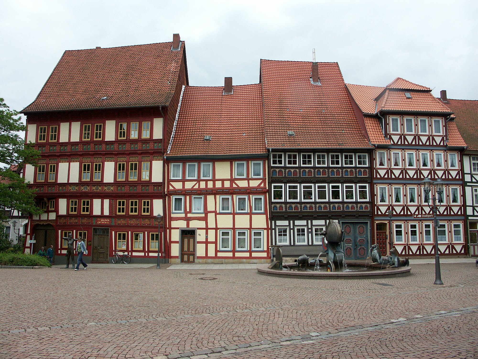 Fachwerkhäuser und Schützenbrunnen