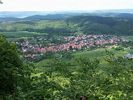 Blick vom Ausichtspunkt Anger bei der Erikahütte auf den Ort Weißenborn