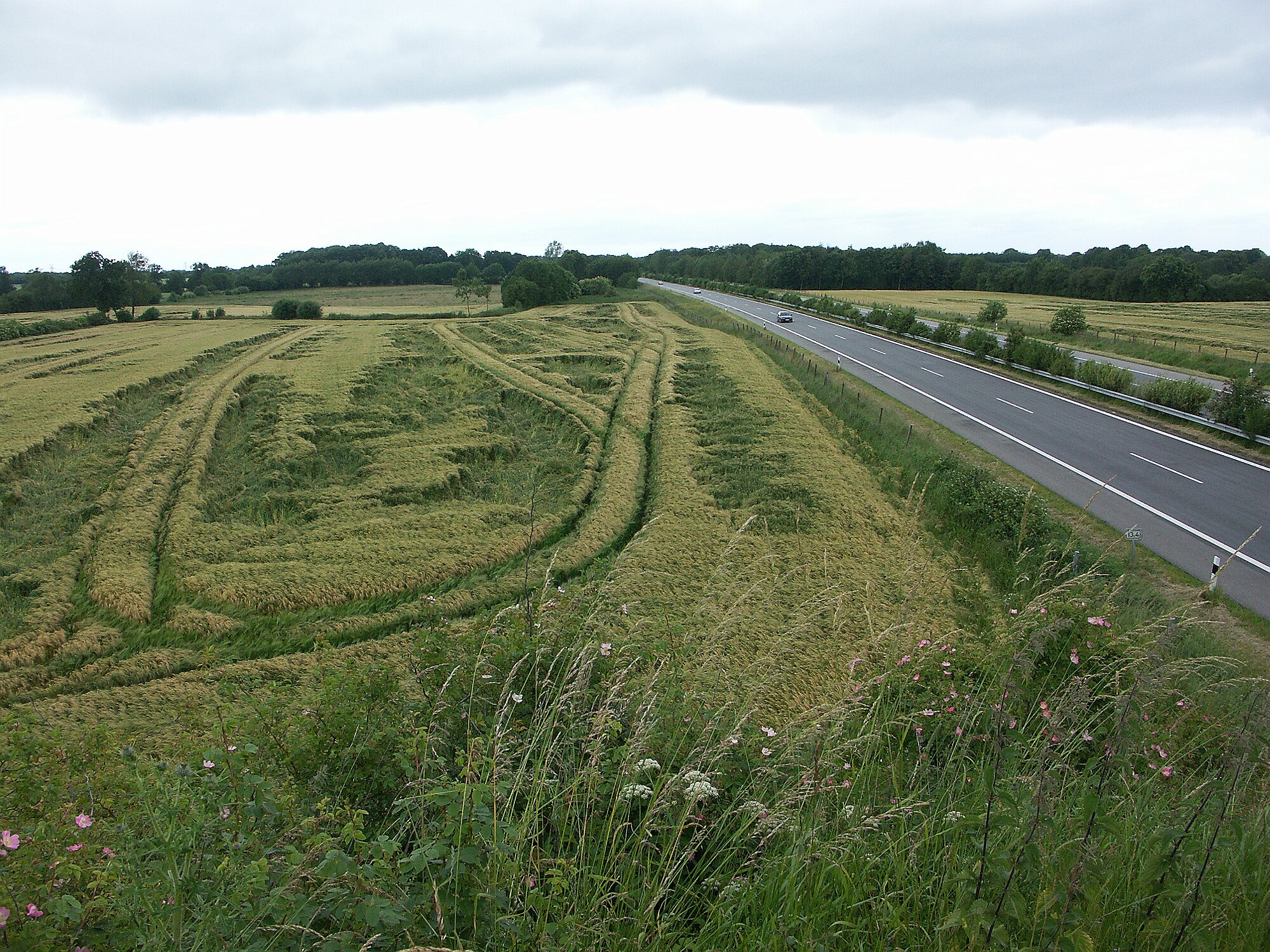 zerzaustes Kornfeld an der B75 bei Ivendorf