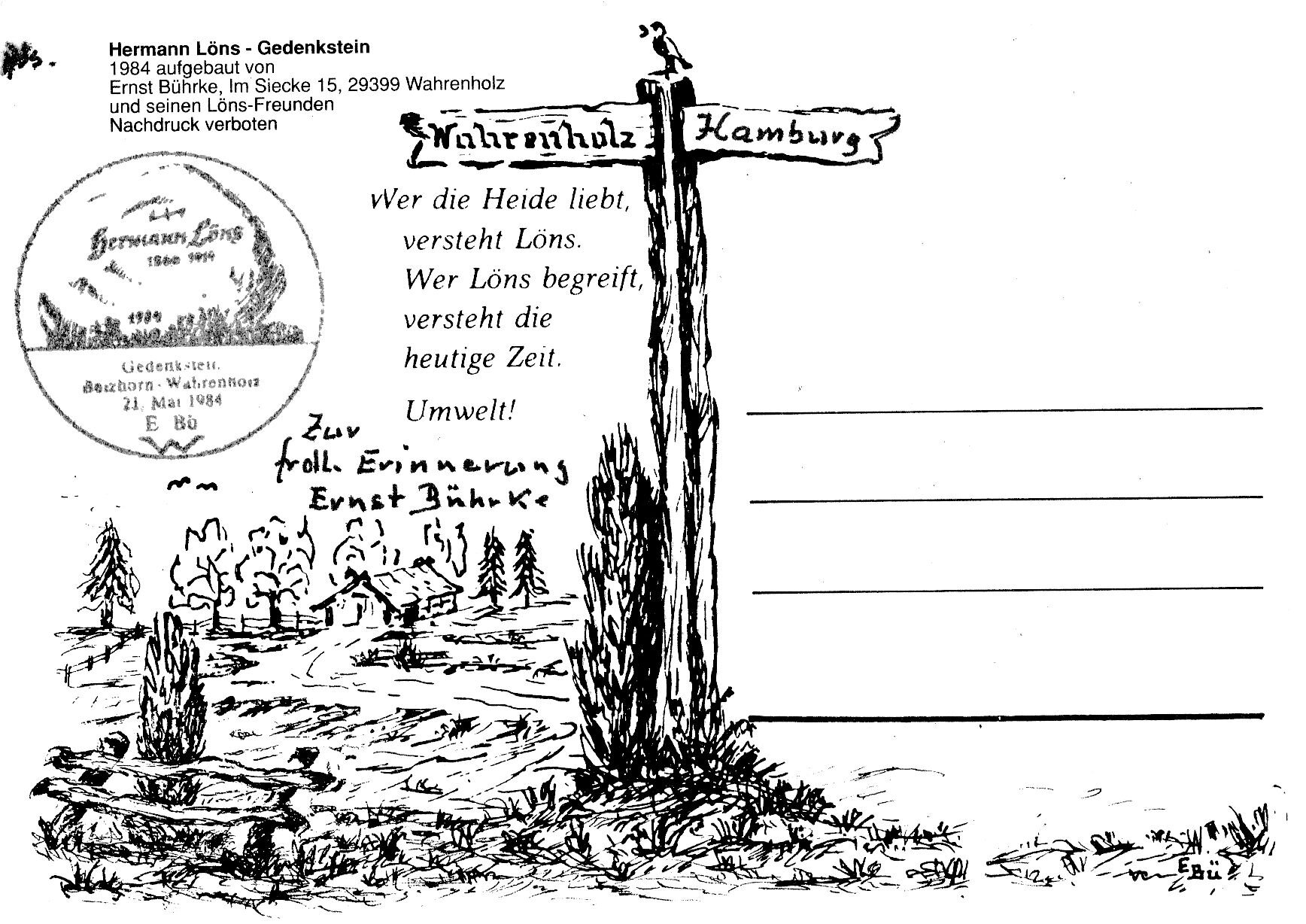 es dann in die Heide zum Hermann-Löns-Gedenkstein. Hier hat mir der Erbauer