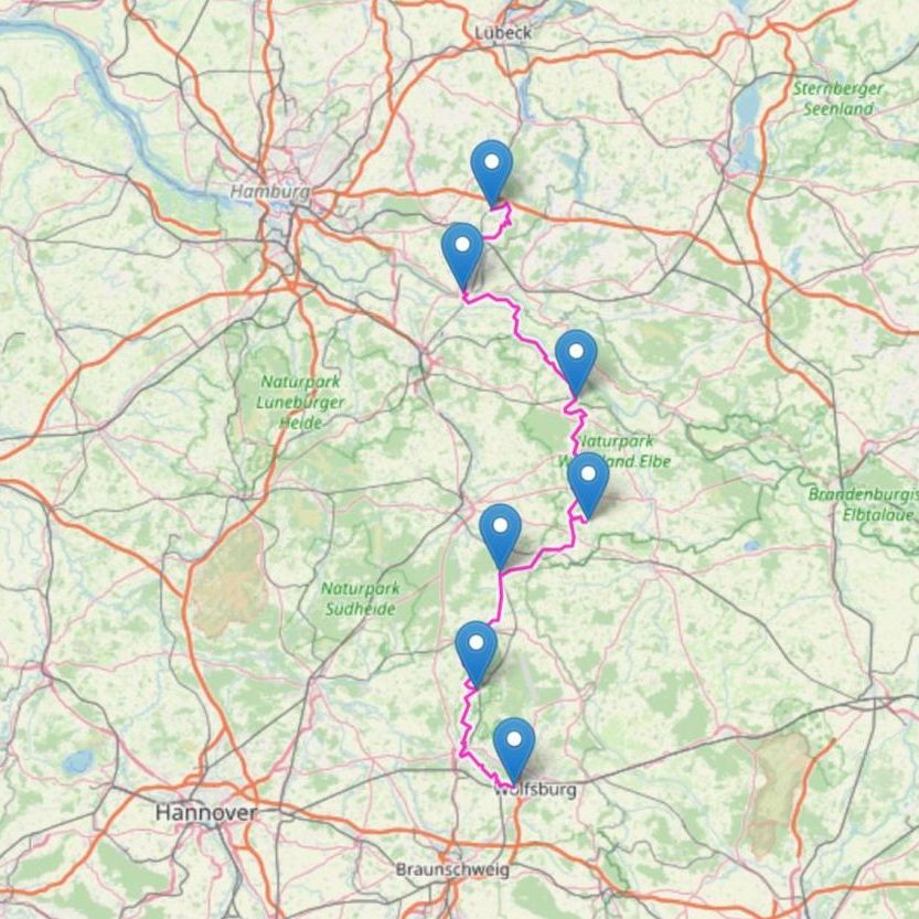 Im Herbst 1999 habe ich begonnen den E6 vom Trennungspunkt E1/E6 in Güster mit südliche Richtung zu wandern. Anfang 2000 habe ich dann zunächst eine Riesenetappe von Leitstade nach Lauenburg geschafft, um dann im Frühjahr jeweils eine Zweitagestour von Leitstade nach Bad Bodenteich und von Bad Bodenteich nach Fallersleben zu wandern. Im Jahr 2007 hatte ich noch einmal die Möglichkeit von Leitstade aus in südliche Richtung zu wandern und dabei den neuen Wegverlauf im Bereich des Jagdschlosses Göhrde kennenzulernen. Diesen neuen Wegverlauf habe ich in die Beschreibung der Etappe von Leitstade nach Clenze eingearbeitet. Inzwischen habe ich erfahren, dass der Wegverlauf von Göhrde in Richtung Bad Bodenteich erheblich verlegt wurde. Vielleicht kann ich dort in Zukunft noch ein wenig den Wegverlauf erkunden. Die gemessene Wanderstrecke von Güster nach Fallersleben beträgt ca. 234 Kilometer